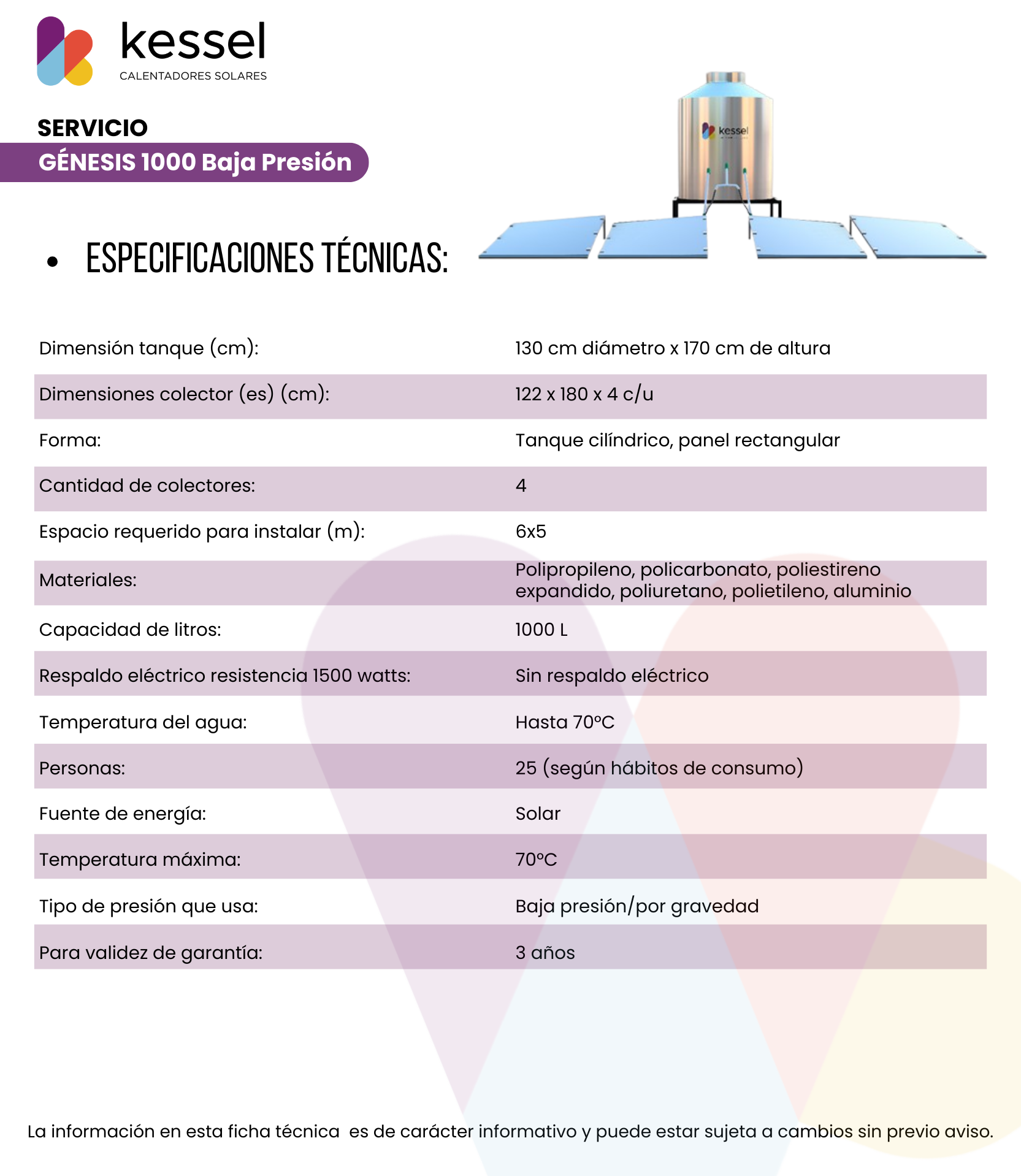 • 3 años de garantía por escrito contra defectos de fábrica e instalación realizada por Kessel.
